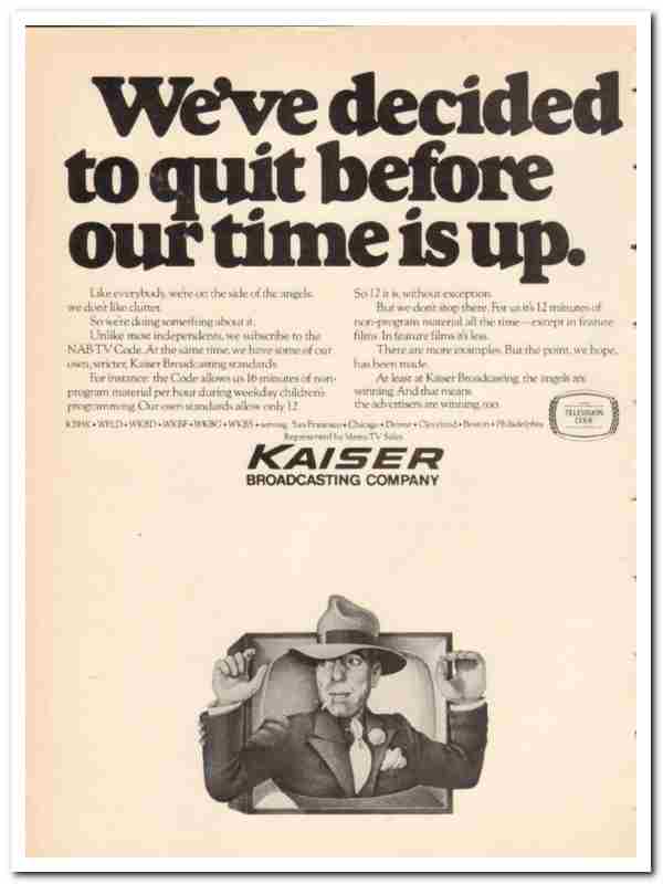 kaiser broadcasting company 1973 time up television media vintage ad