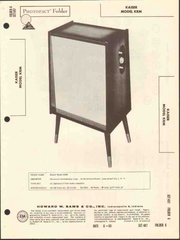 kaiser model krm 2 tube audio amplifier sams photofact manual