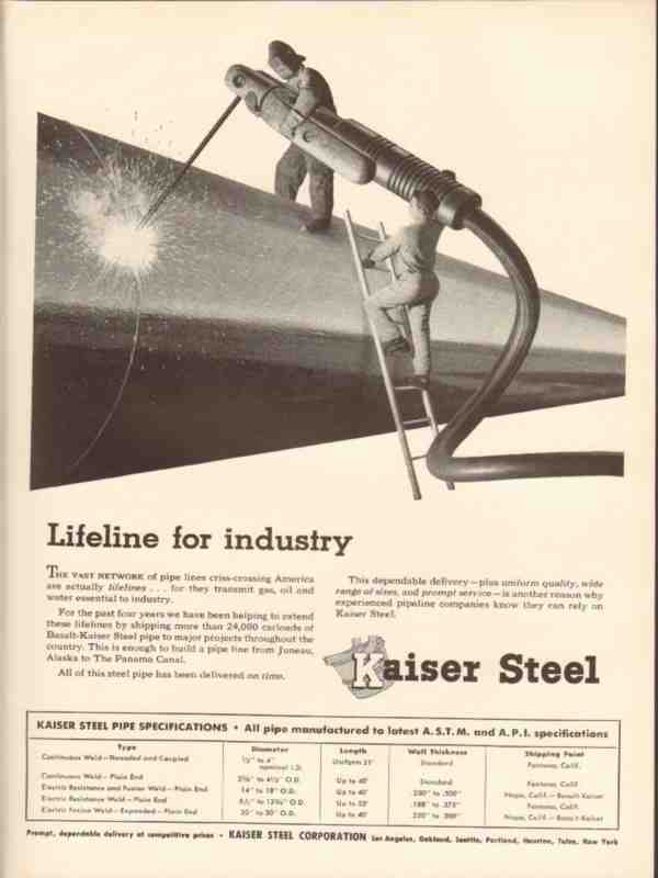 kaiser steel corp 1954 lifeline industry pipe line basalt vintage ad