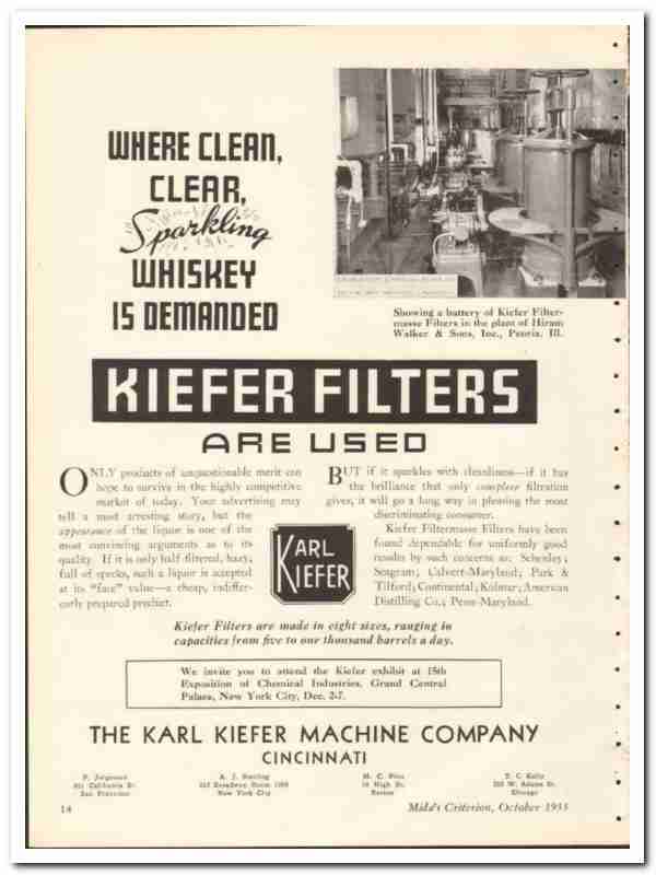 Karl Kiefer Machine Company 1935 vintage whiskey ad filters sparkling