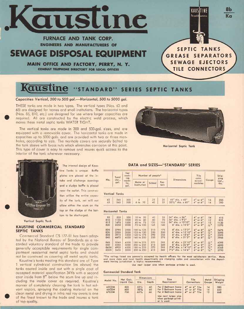 Kaustine Furnace Tank Corp 1956 Vintage Catalog Plumbing Septic Sewage
