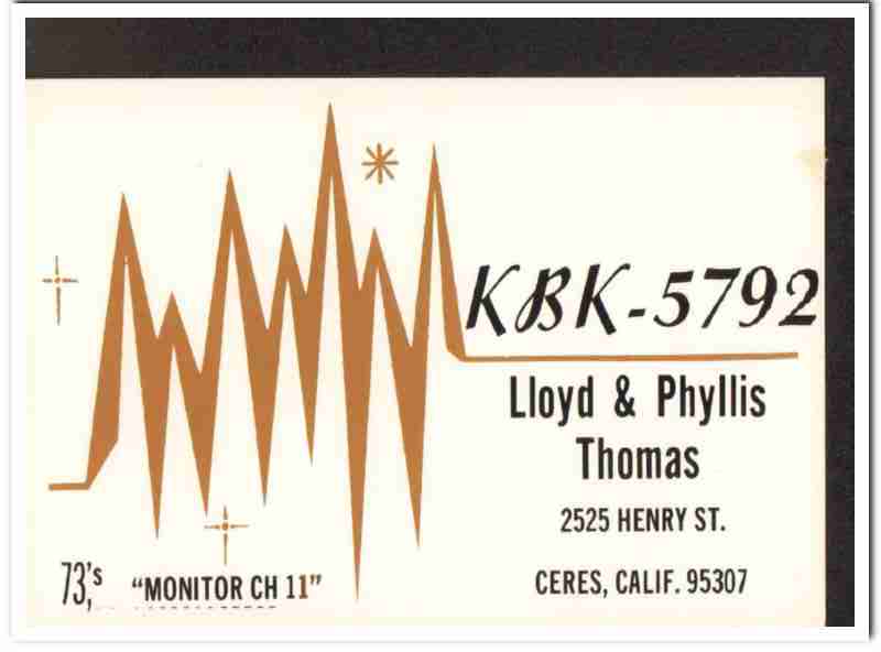 kbk-5792 lloyd thomas ceres calif 1960s cb qsl card vintage postcard
