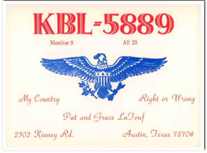 KBL-5889 Pat Latouf Austin TX 1960s Vintage Postcard CB Radio QSL Card