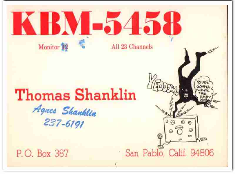 KBM-5458 Thomas Shanklin San Pablo Cal 1960s Vintage Postcard CB QSL 1