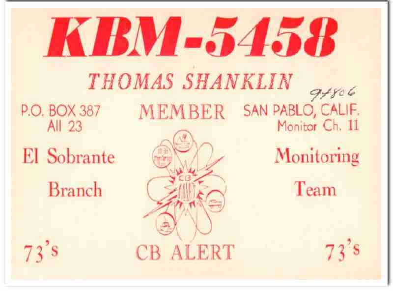 KBM-5458 Thomas Shanklin San Pablo Cal 1960s Vintage Postcard CB QSL 2