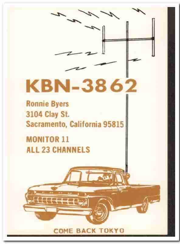 KBN-3862 Ronnie Byers Sacramento CA 1960s Vintage Postcard CB QSL