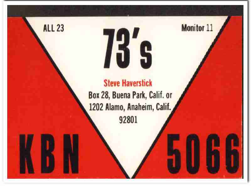 KBN-5066 Steve Haverstick Anaheim CA 1960s Vintage Postcard CB QSL