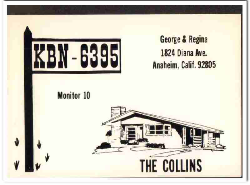 KBN-6395 George Collins Anaheim CA 1960s Vintage Postcard CB QSL