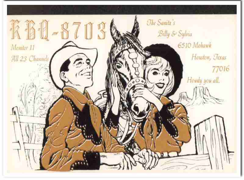 KBQ-8703 Sylvia Billy Sanitz Houston TX 1960s Vintage Postcard CB QSL