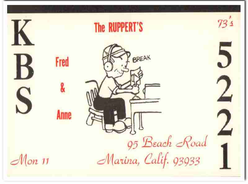 KBS-5221 Fred Ruppert Marina CA 1960s Vintage Postcard CB QSL Card