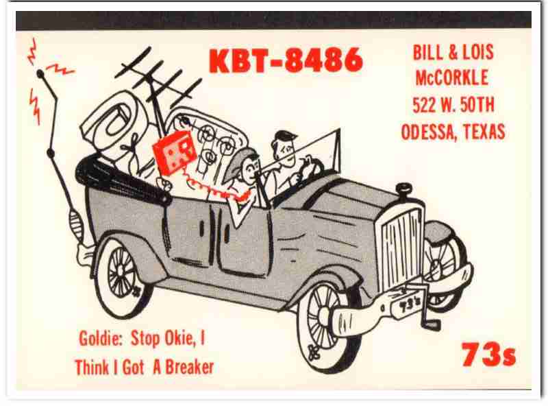 KBT-8486 Bill McCorkle Odessa TX 1960s Vintage Postcard CB Radio QSL