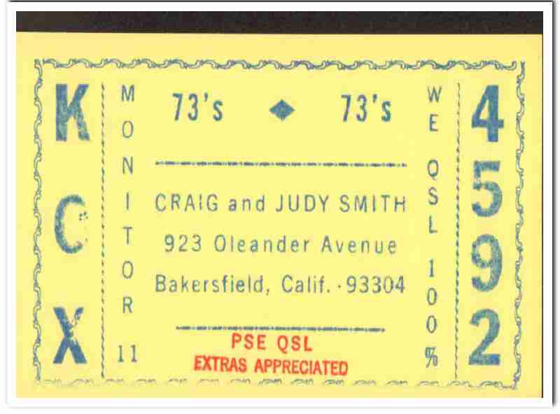 KCX-4592 Craig Smith Bakersfield CA 1960s Vintage Postcard CB QSL