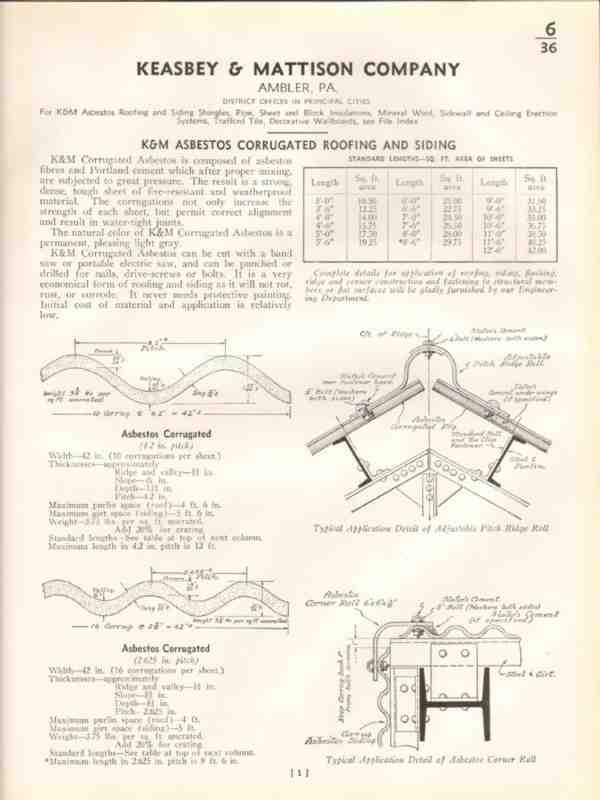 Keasbey Mattison Company 1938 Vintage Catalog Roof Asbestos Corrugated