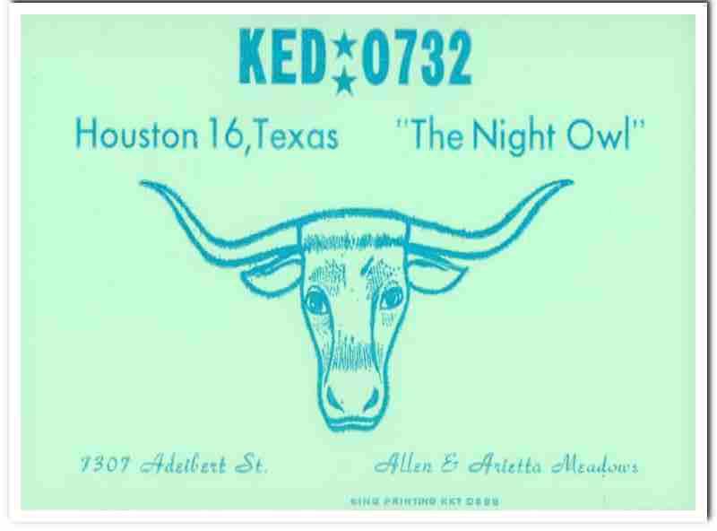 KED-0732 Allen Meadows Houston TX 1960s Vintage Postcard Steer CB QSL