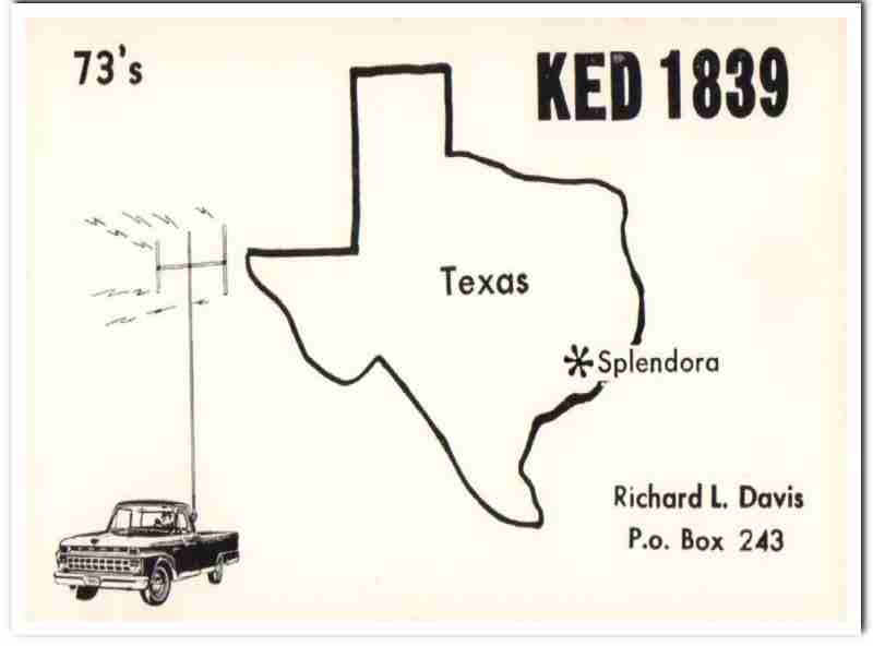 KED-1839 Richard L Davis Splendora TX 1960s Vintage Postcard CB QSL