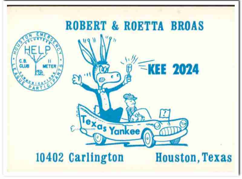 KEE-2024 Robert Broas Houston TX 1960s Vintage Postcard CB Radio QSL