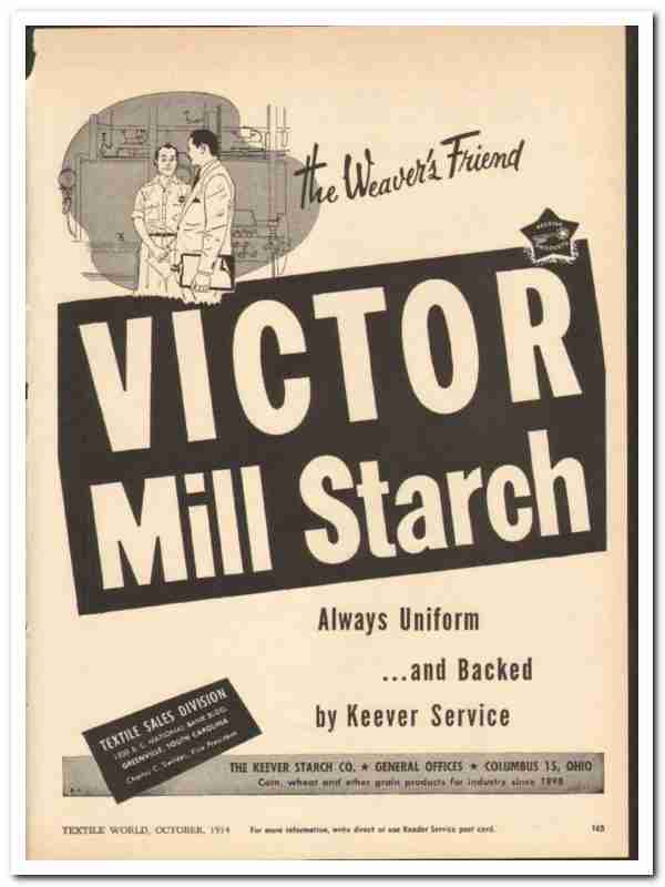 Keever Starch Company 1954 vintage textile ad Victor mill weavers 1
