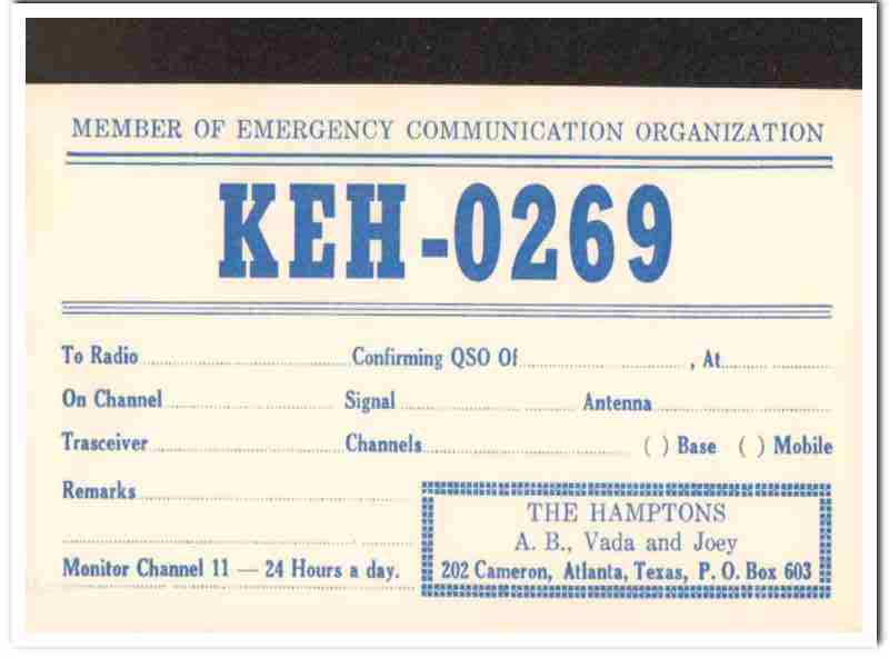 KEH-0269 Ab Hampton Atlanta Texas 1960s Vintage Postcard CB Radio QSL
