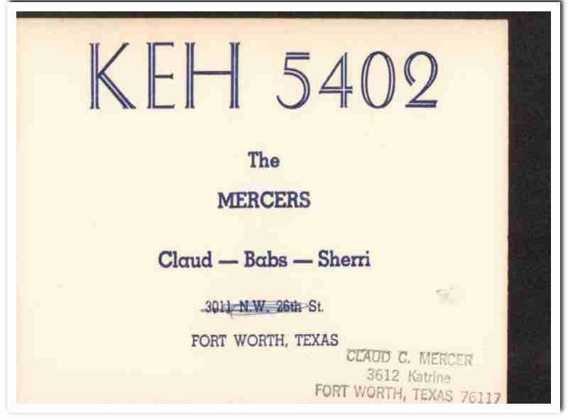 KEH-5402 Claud Mercer Ft Worth TX 1960s Vintage Postcard CB Radio QSL