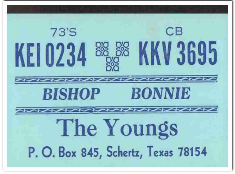 KEI-0234 Bishop Young Schertz TX 1960s Vintage Postcard CB Radio QSL