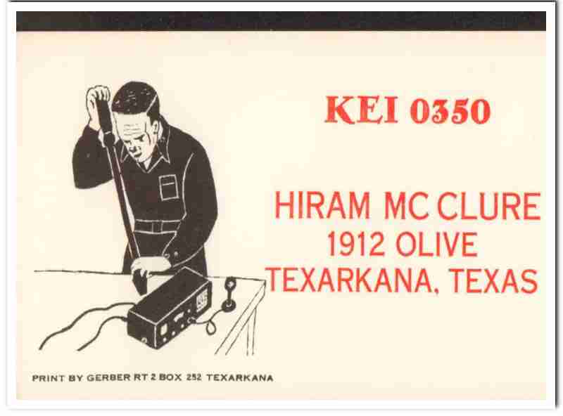 KEI-0350 Hiram McClure Texarkana Texas 1960s Vintage Postcard CB QSL
