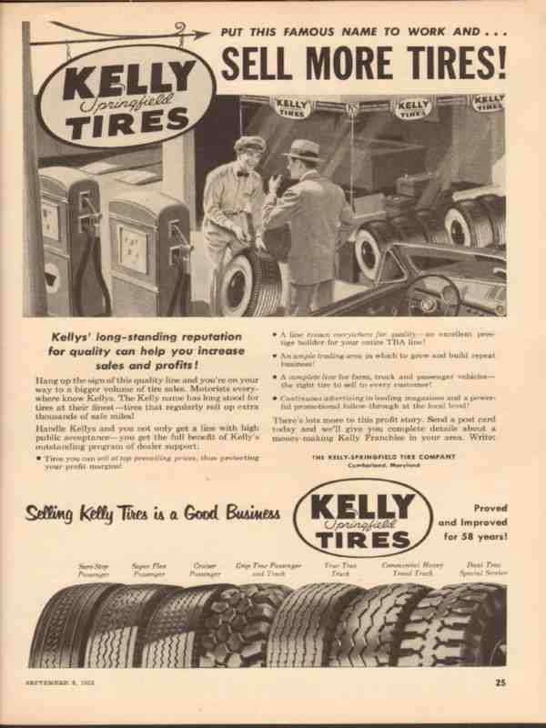 kelly-springfield tire co 1952 famous name sell more tires vintage ad