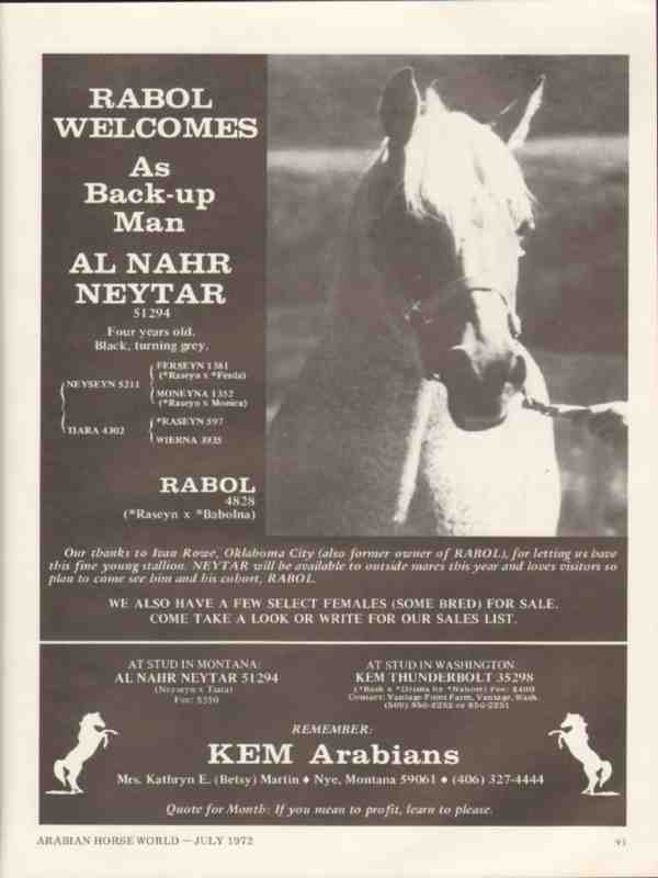 kem arabians 1972 al nahr neytar rabol raseyn stud horse vintage ad