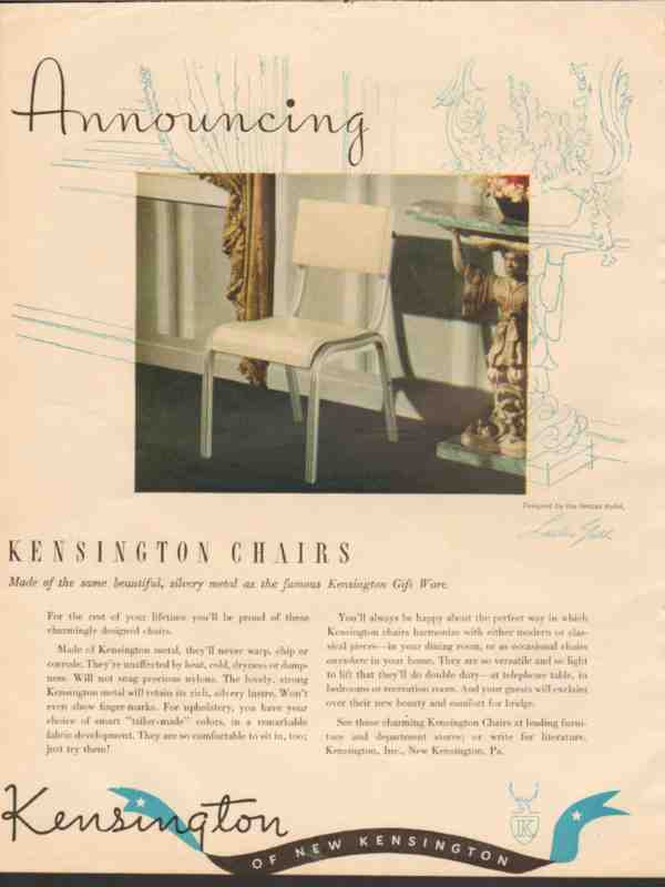 kensington inc 1946 chairs made of same metal gift ware vintage ad