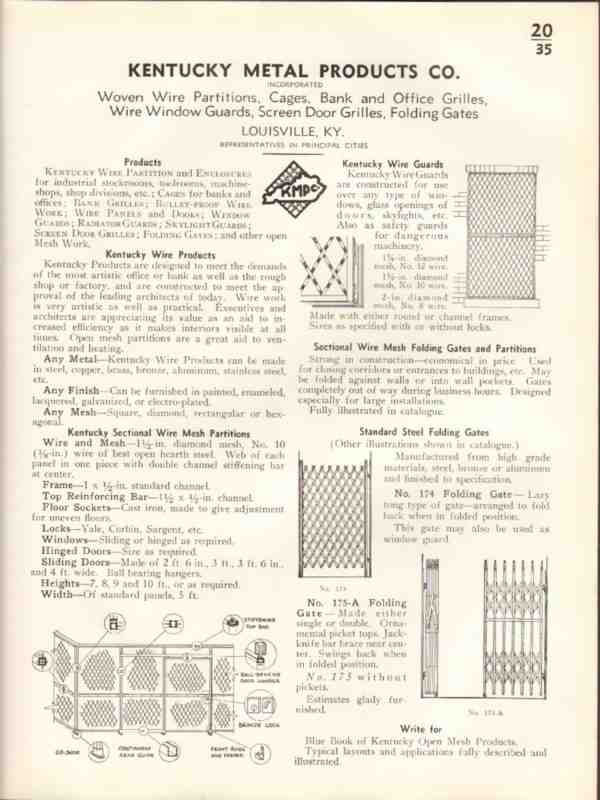 Kentucky Metal Products Company 1938 Vintage Catalog Partitions Gates