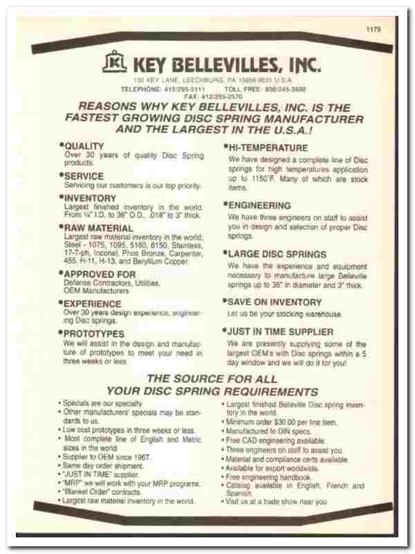 Original 1998 Oil and Gas trade vintage catalog for KEY BELLEVILLES, INC. Main office and plant were located at 100 Key Lane, Leechburg, PA.