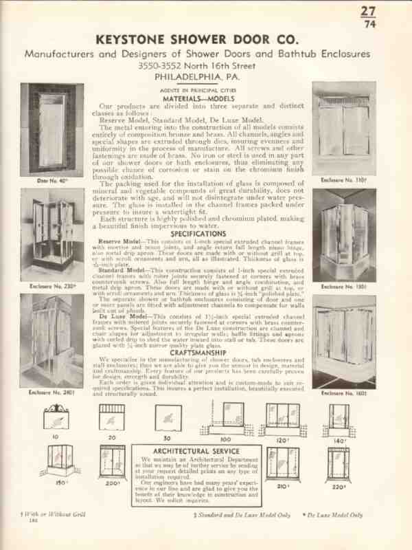 Keystone Shower Door Company 1938 Vintage Catalog Bathtub Enclosures