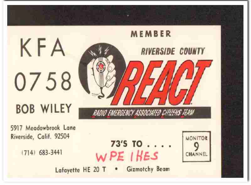 KFA-0758 Bob Wiley Riverside CA 1960s Vintage Postcard CB QSL Card