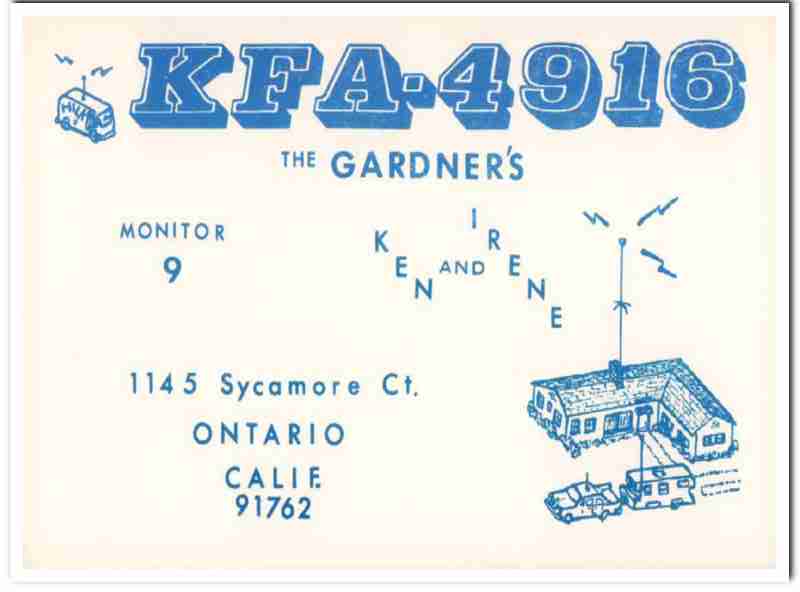 KFA-4916 Ken Gardner Ontario CA 1960s Vintage Postcard CB QSL Card