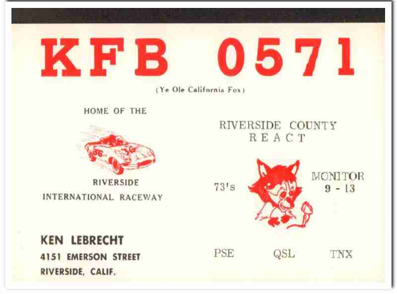 KFB-0571 Ken Lebrecht Riverside CA 1960s Vintage Postcard CB QSL