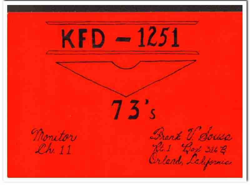 KFD-1251 Frank Sousa Orland CA 1960s Vintage Postcard CB QSL Card 1