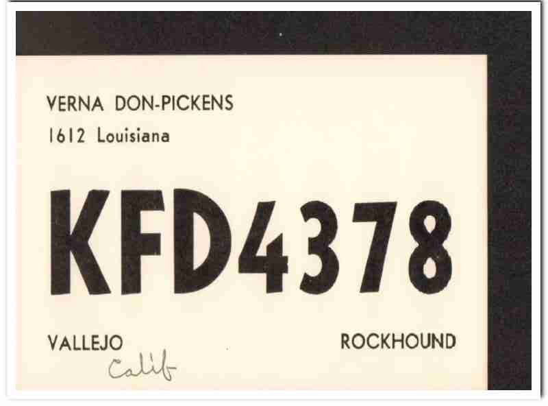 KFD-4378 Verna Don-Pickens Vallejo CA 1960s Vintage Postcard CB QSL