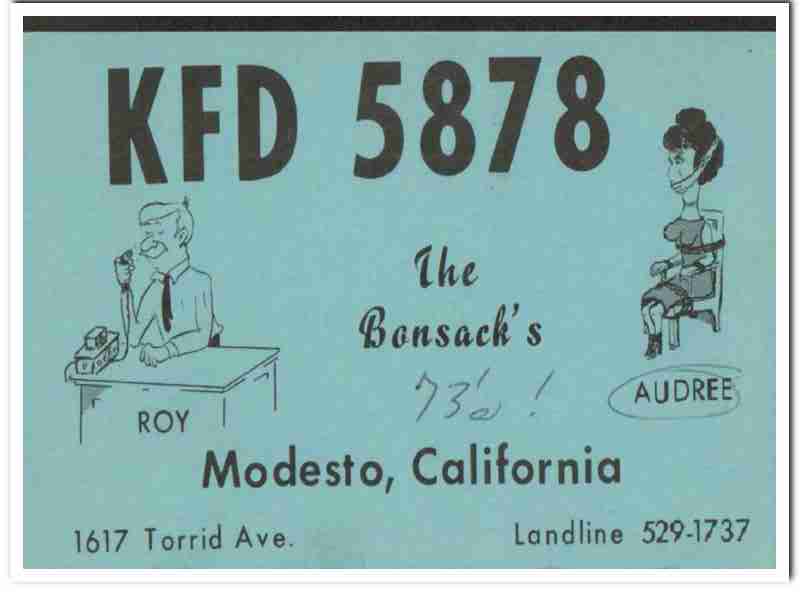 KFD-5878 Roy Bonsack Modesto CA 1960s Vintage Postcard CB QSL Card