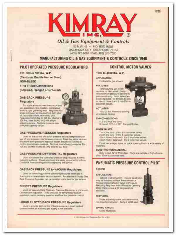 Kimray Inc 1994 Vintage Catalog Oil Equipment Controls Valves Gas