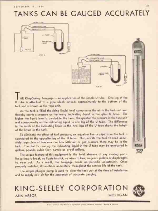 king-seeley corp 1934 tanks can be gauged accurately vintage ad