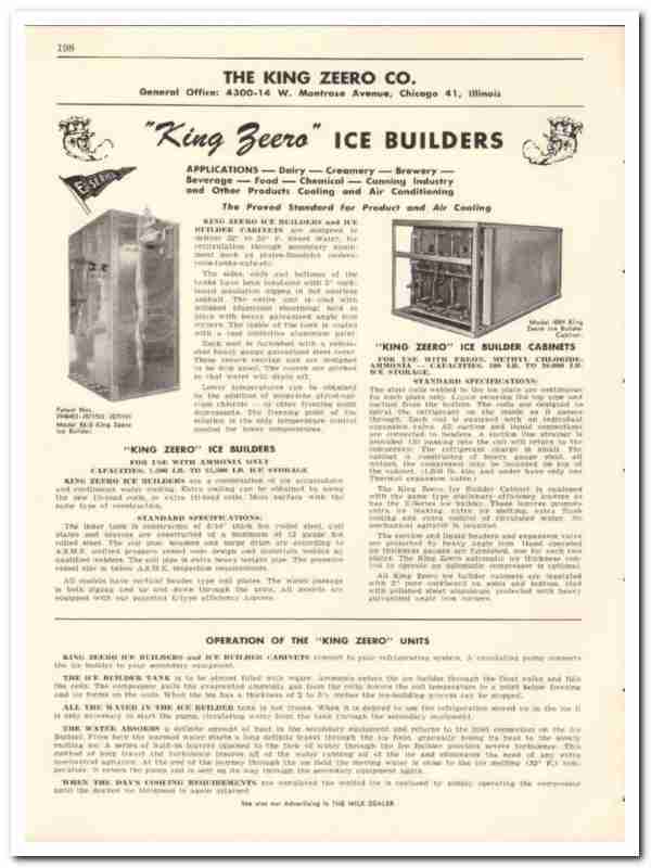 Original dairy trade vintage catalog for THE KING ZEERO COMPANY. Main office and plant was located at 4300-14 West Montrose Avenue, Chicago, IL.