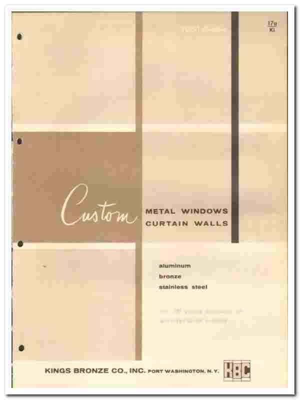 Original 1961 window trade vintage catalog for the KINGS BRONZE COMPANY, INC. Main office and plant were located in Port Washington, NY.