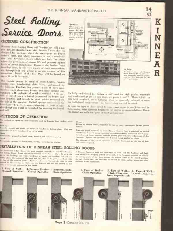 Kinnear Mfg Company 1939 vintage door catalog steel rolling service