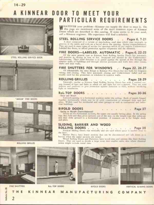 Kinnear Mfg Company 1946 vintage door catalog rolling