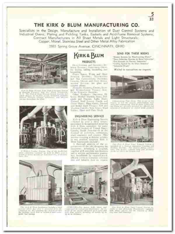 Original 1941 industrial trade vintage catalog for the KIRK& BLUM MANUFACTURING COMPANY. Main office and plant was located at 2885 Spring Grove Avenue, Cincinnati, OH.