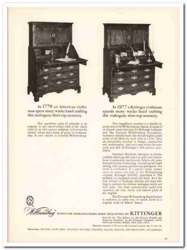 kittinger company 1977 williamsburg reproduction furniture vintage ad