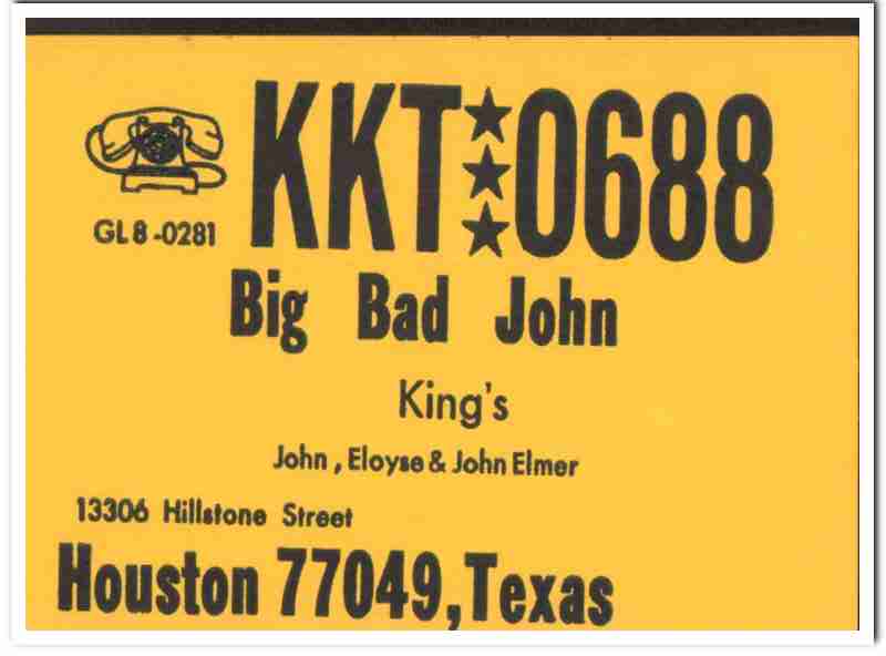 Original QSL postcard from the mid to late 1960s.This card was sent from CB radio station: KKT-0688. Was issued to Eloyse and John King, at 13306 Hillston Street, Houston, Texas. His CB handle was Big Bad John. Child name is John Elmer. During the 1920s and 1930s, amateur ham radio operators adopted the practice of two-way exchanging of QSL postcards, to confirm their radio contact, with a report of reception. QSL cards got to be known as wallpaper, commonly used to decorate the walls of their radio equipment room. During the 1960s, CB citizen band radio became popular, and the practice of exchanging QSL cards to confirm radio contacts was enjoyed by many with this new hobby. Today, these cards are very collectible and look great matted and framed.