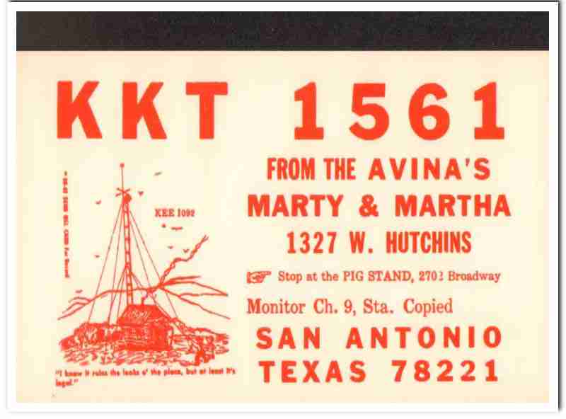 KKT-1561 Marty Avina San Antonio Texas 1960s Vintage Postcard CB QSL