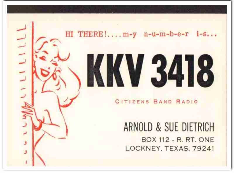 Original QSL postcard from the mid to late 1960s.This card was sent from CB radio station: KKV-3418. Was issued to Sue and Arnold Dietrich, of Lockney, Texas. HI THERE! m-y n-u-m-b-e-r- i-s... During the 1920s and 1930s, amateur ham radio operators adopted the practice of two-way exchanging of QSL postcards, to confirm their radio contact, with a report of reception. QSL cards got to be known as wallpaper, commonly used to decorate the walls of their radio equipment room. During the 1960s, CB citizen band radio became popular, and the practice of exchanging QSL cards to confirm radio contacts was enjoyed by many with this new hobby. Today, these cards are very collectible and look great matted and framed.
