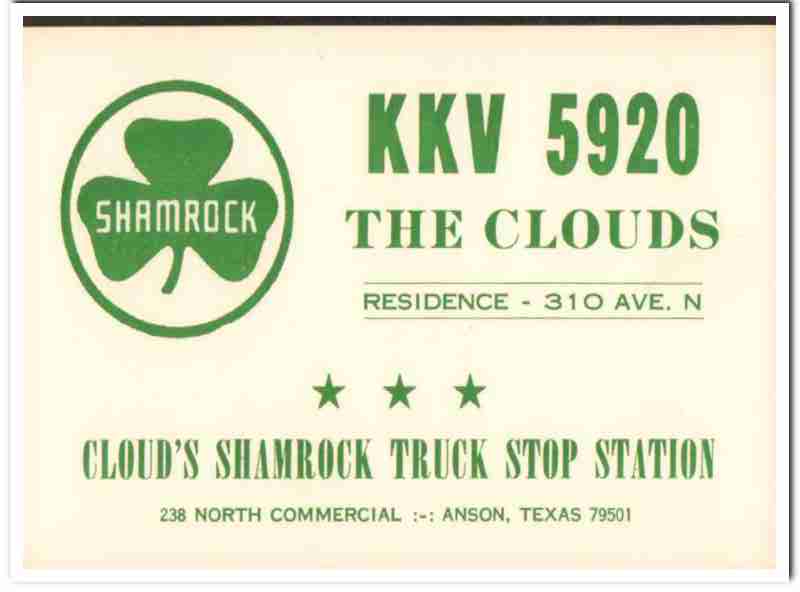 Original QSL postcard from the mid to late 1960s.This unused card was sent from CB radio station: KKV-5920. Was issued to The Clouds, at 310 Avenue N, Anson, Texas, also Clouds Shamrock Truck Stop Station, at 238 North Commercial Avenue, Anson, Texas. During the 1920s and 1930s, amateur ham radio operators adopted the practice of two-way exchanging of QSL postcards, to confirm their radio contact, with a report of reception. QSL cards got to be known as wallpaper, commonly used to decorate the walls of their radio equipment room. During the 1960s, CB citizen band radio became popular, and the practice of exchanging QSL cards to confirm radio contacts was enjoyed by many with this new hobby. Today, these cards are very collectible and look great matted and framed.