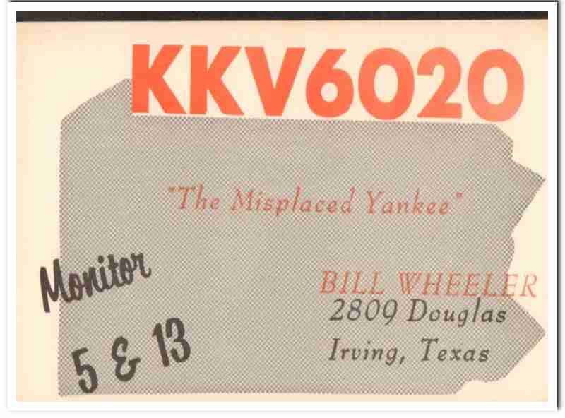 KKV-6020 Bill Wheeler Irving Texas 1960s Vintage Postcard CB Radio QSL